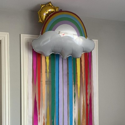 It's all sunshine and rainbows with this Rainbow Confetti Foil Balloon from Spritz™. The smiling yellow sunshine and bright rainbow stripes will mimic the happy occasion. Whether you're celebrating a birthday, anniversary, retirement or any other special occasion, these shiny balloons make decorating a breeze. The Spritz™ rainbow confetti foil balloon can be coordinated with other theme party supplies.