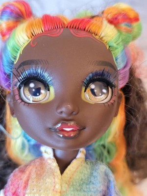 - SPARKLES IN RAINBOW: Iris is dressed in her signature RAINBOW from head to toe with lots of sparkles. She has gorgeous, detailed features in her fashion, beautiful long curly RAINBOW hair, long eye lashes and glass eyes.