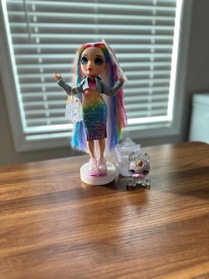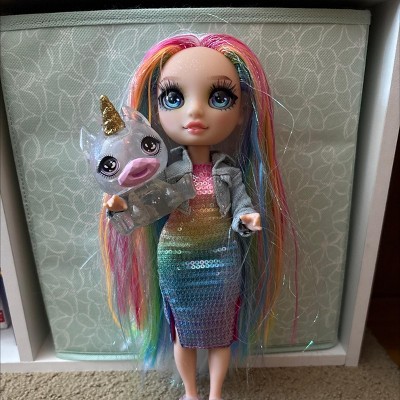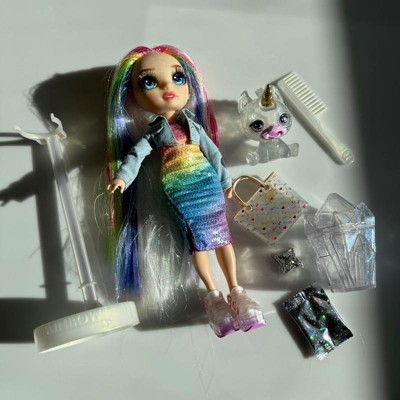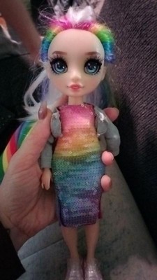[This review was collected as part of a promotion.] I received this product for free from Influenster in exchange for my honest review. This doll is so pretty! She has sparkles on her face, glittery rainbow streaks in her hair, a rainbow sequined dress and jacket, and PLUS shoes, a bag, a unicorn pet, and a large crystal that can all hold the slime that you get to make. There is so much detail! My daughter is going to get tons of playtime out of this!