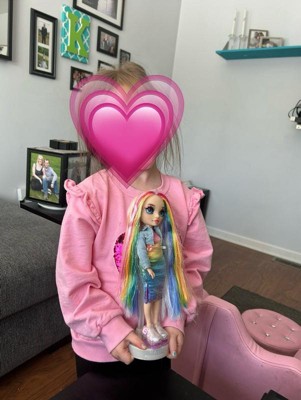 [This review was collected as part of a promotion.] My daughters love the doll. The rainbow in her hair and on her dress is so gorgeous. The slime was so easy to make no mess at all and the glitter added to it was fun for them.