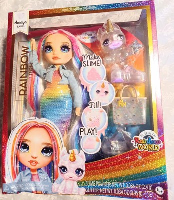 Rainbow High Amaya Rainbow with Slime Kit & Pet 11'' Shimmer Doll with DIY Sparkle Slime, Magical Yeti Pet and Fashion Accessories