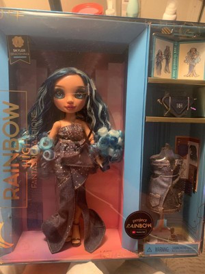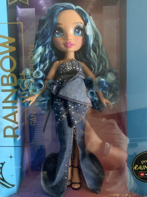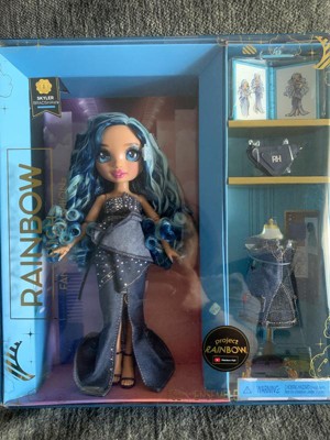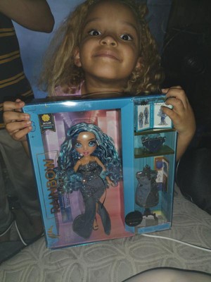 [This review was collected as part of a promotion.] My daughter loves dolls. Especially pretty ones. She got the Rainbow High Fantasic Fashion doll, Skylar Bradshaw. They all have their own names and unique styles and color schemes. She is blue with the best, soft doll hair. Not only that, she is dressed in a stylin looks like jeans(?) type dress with some accessories. My daughter loves these Rainbow high dolls.