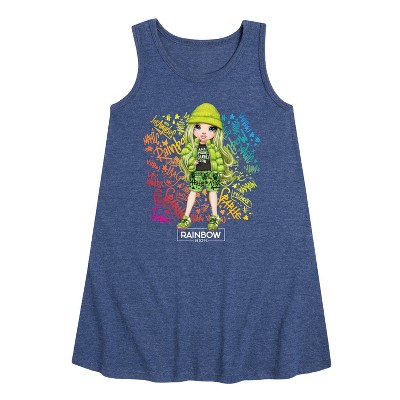 Rainbow High - Jade Hunter Rainbow Graffiti - Toddler And Youth Girls Fit And Flare Dress - Shine bright in Rainbow High graphic apparel showcasing trendsetters like Ruby Anderson, Poppy Rowan, Sunny Madison, and Violet Willow. With vibrant colors and runway-ready style, these designs celebrate creativity and individuality.