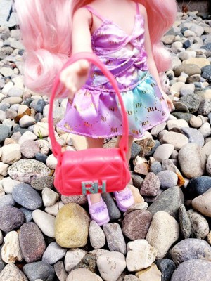 [This review was collected as part of a promotion.] This doll is super cute! It comes with a purse and shoes to dress it up. My daughter especially loved her soft, bright pink hair! I will say it was really hard to get out of the package without damaging said hair. She has been playing with it nonstop for two weeks!