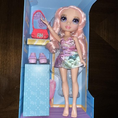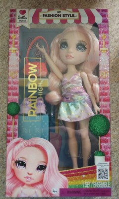 [This review was collected as part of a promotion.] Style Bella pink fashion doll from Rainbow high is absolutely adorable. My daughter loved the doll so much that she carries it everywhere and sleeps with it ever since I gave it to her. She loves removing and putting on the shoes and bag playing dress up. Now I need to find and buy more outfits for the doll.