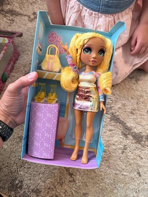 [This review was collected as part of a promotion.] I don't know much about rainbow high, and truthfully neither does my four-year-old daughter, but I gave this all to her as a prize for earning her stars based on good behavior and she loves it! It's definitely larger than a Barbie and has included accessories such as shoes which can be removed and a handbag. The dolls hair is styled very nicely and my daughter loves using her other Barbie brushes to also brush this one's hair. The packaging was minimal but it was definitely very secure and easy to see what you are getting. I'm sure the next time she sees another color in the store she'll want a friend for this one!