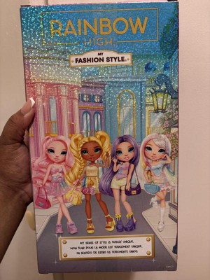 [This review was collected as part of a promotion.] My daughter is really enjoying playing with the Rainbow High My Fashion Style Doll. She loves the outfit and the look of the doll. It comes with a pair of high heels and a small purse. It would be nice if it came with a few more accessories, but overall it is a great toy.