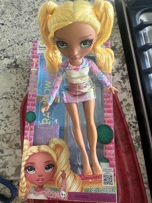 [This review was collected as part of a promotion.] Sunny is so blonde and pretty. Came in a great box where you can see everything about her! Hours worth of play with Rainbows high newest addition. She's everything you ever wanted in a action doll