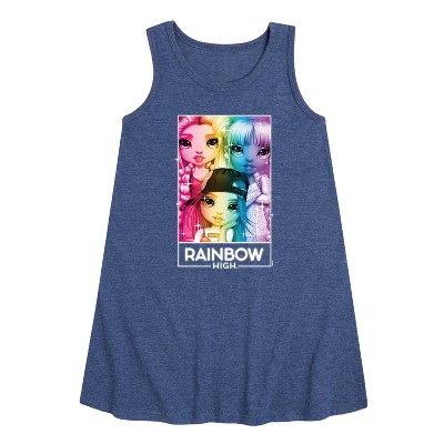 Rainbow High - Rainbow Checkered Frame - Toddler and Youth Girls A-line Dress - Shine bright in Rainbow High graphic apparel showcasing trendsetters like Ruby Anderson, Poppy Rowan, Sunny Madison, and Violet Willow. With vibrant colors and runway-ready style, these designs celebrate creativity and individuality.