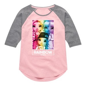 Rainbow High - Rainbow Sparkle Box - Toddler And Youth Girls Raglan Graphic T-Shirt - Shine bright in Rainbow High graphic apparel showcasing trendsetters like Ruby Anderson, Poppy Rowan, Sunny Madison, and Violet Willow. With vibrant colors and runway-ready style, these designs celebrate creativity and individuality.