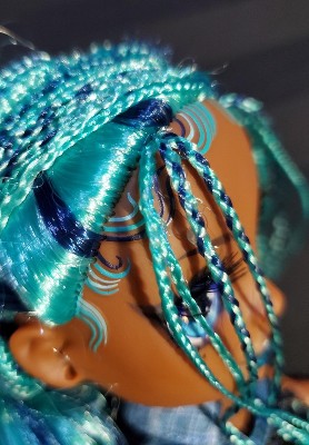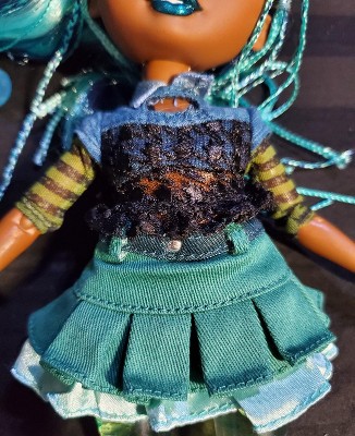 We've been waiting for series 2 of this line for a while and were excited we managed to snag this one when she came in stock in time for Christmas. Her overall design is lovely, the metallic lipstick is stunning. The clothes (2 pieces - 1 top and 1 bottom) are excellent in quality and details and her hair styling is unique. The hair quality is what one would expect from Rainbow High (non-budget) dolls, she does have a minor amount of gel that needs washed out. This particular dolls' hair can be restyled to a point however her little microbraids feel more like thread than nylon/hair and could be difficult to work with as, even if they were unraveled, would likely not intergrate well. There is normal doll hair under them that can be worked with. The hair is a bit thin in the back to accommodate her factory style. Some of her accessories could be better - they are cute but we've seen the cell phone and makeup brush before and the purse technically opens but would be difficult to actually utilize in play. The shoes feel a bit bland and are not secured well to the doll (as they are just slides with no elastics to hold them on out of the box), they were almost lost in the first hour of play running around the house. Disappointed in the lack of stand. The leg gimmick is fun and works as intended - no signs of leaking or any cracks. Packaging, as usual with RH dolls, was a pain - definately requires patient adult removal if you dont want damage to the doll/clothing.