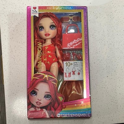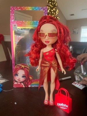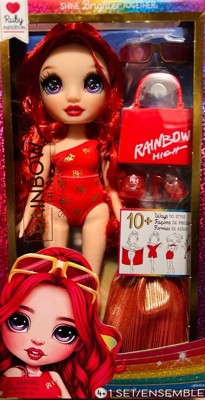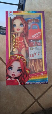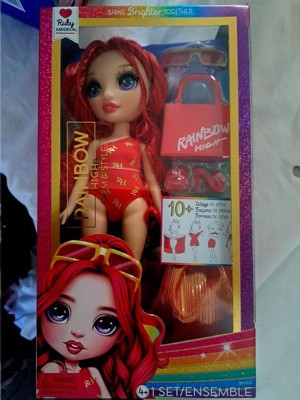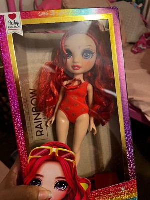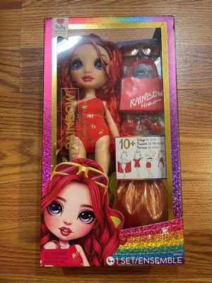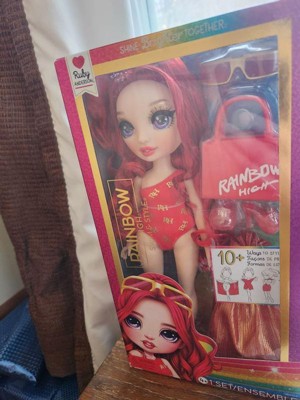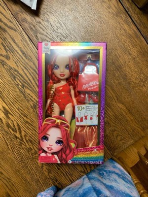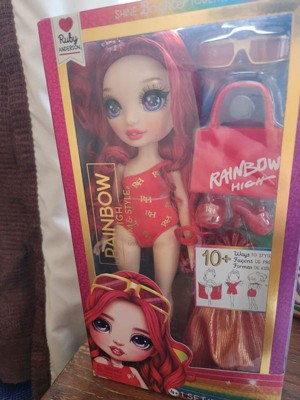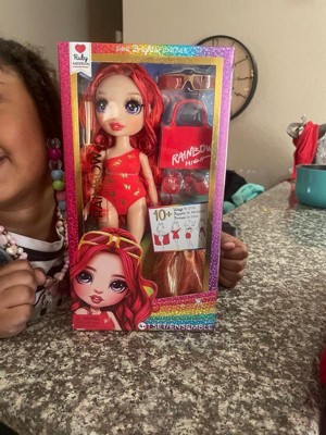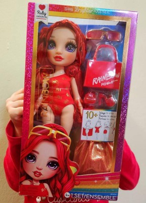 Rainbow High Swim & Style Ruby Red 11'' Doll with Shimmery Wrap to Style 10+ Ways, Removable Swimsuit, Sandals, Accessories