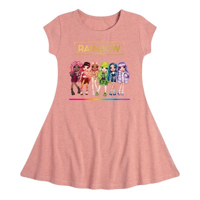 Rainbow High - Toy Doll Lineup - Toddler and Youth Girls A-line Dress - Shine bright in Rainbow High graphic apparel showcasing trendsetters like Ruby Anderson, Poppy Rowan, Sunny Madison, and Violet Willow. With vibrant colors and runway-ready style, these designs celebrate creativity and individuality.