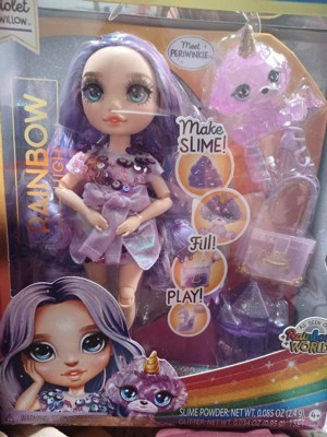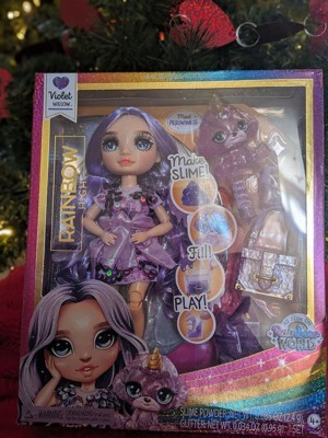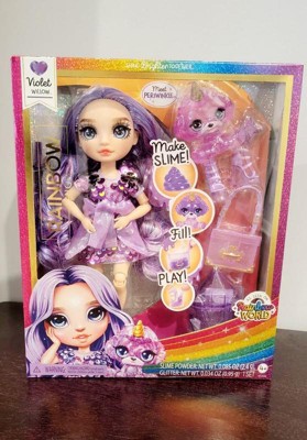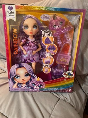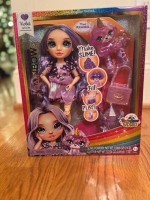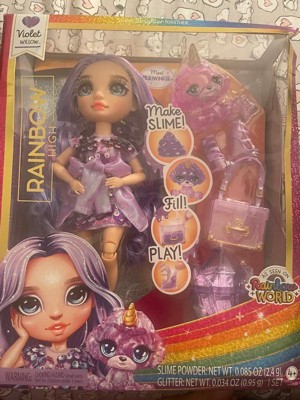 Rainbow High Violet Purple with Slime Kit & Pet 11'' Shimmer Doll with DIY Sparkle Slime, Magical Yeti Pet and Fashion Accessories