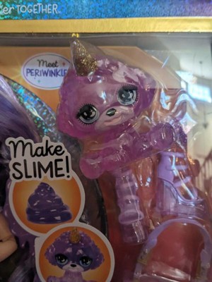 [This review was collected as part of a promotion.] My daughter was super excited to get this! However there were a few things we didn’t like about it. 1. The hair was super hard to comb through due to the coating they place on it to keep the curls in place. Which is okay but then it shed like crazy when combing out and I literally had to cut some strands off. 2. When it was time to make the slime, the container was faulty and we lost a lot of the water forcing us to think quick and place it into a newer cup. Otherwise l, she loves that it comes with a little pet, which is where she keeps the slime and I believe other than those two issues; it’s worth a try. She now wants the green one. We have the purple.
