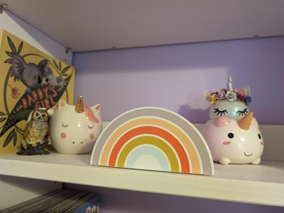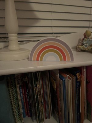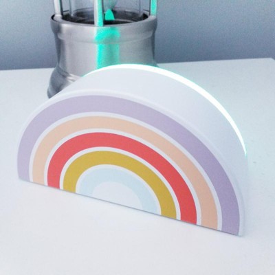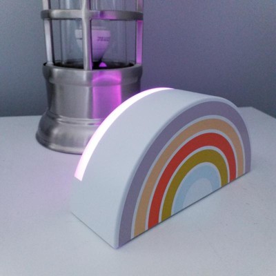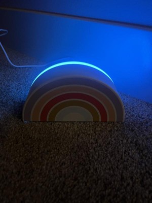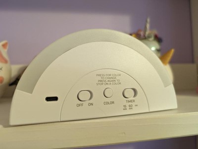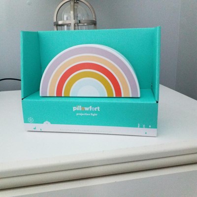 This Rainbow Kids' Projection Night Light from Pillowfort™ with a portable design make a fun lighting accent in your child's room. It projects a magical rainbow on the walls and ceiling in a darkened room for a enchanting look. Designed with an integrated LED bulb for long-lasting use, this battery-operated projection night light comes with a timer, a color changing mode and an on/off base slide switch.
