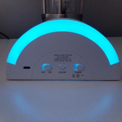 I received these products for free from the Hey, Bullseye™ sampling program in exchange for my honest review. This is a nice light for a child's room, but there are a couple of things I don't like. It only comes with a USB charging cord and there's no outlet attached, so you need to connect it to a plug or have an outlet with a USB slot. I wish there was a battery option. The colors are ok, but the room needs to be pretty dark to get a full effect. I wish the colors of the painted rainbow on the front were brighter; they're more muted and neutral. It has three options for a timer, 15 min, 60 min or no timer.