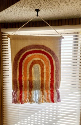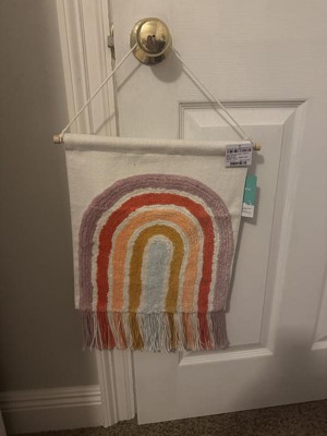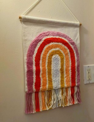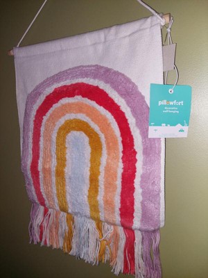 Liven up your kiddo's indoor space with this Rainbow Tapestry from Pillowfort™. The vertical wall decor features a rainbow tapestry on the front for magical style, along with tassel detailing at the bottom for charming texture and flair. Plus, it has a dowel rod and corded string at the top for easy hanging on any wall or door.