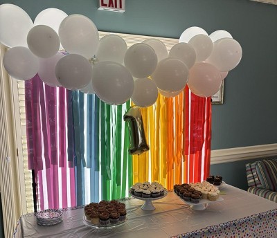 30ct Balloon Garland Décor Kit with Rainbow Tiered Backdrop - Spritz™