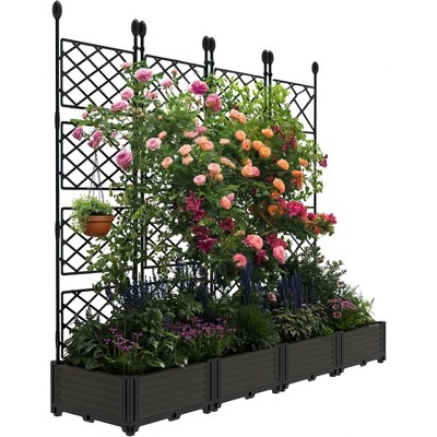 Raised Garden Beds with Trellis, Vertical Planter Box for Climbing Plants, Outdoor Privacy Screen & Garden Kit for Patio, Balcony, Backyard