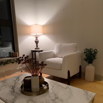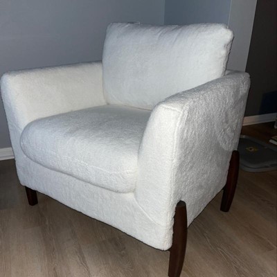 The Ralston upholstered accent chair in a classic off-white/cream fabric by Lifestyle Solutions is the perfect chair for any room in your living space. Designed to for the living room, bedroom, or any room that needs a pinch of excitement. The Ralston features high-density foam back cushioning. The High Pile Fleece material also gives this chair a warmth mixed with coziness. This artistically created piece brings to life any space making it comfortable, fun, and inviting. The Ralston is built with solid hardwood framing and a solid wood base. The elegant wood legs are finished in a warm walnut finish. The Ralston makes an excellent chair for any room and will instantly make the space enchanting.