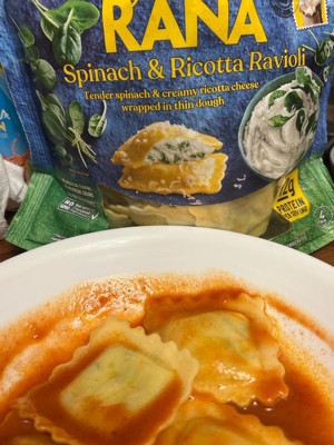 [This review was collected as part of a promotion.] The Rana spinach and ricotta ravioli hit the spot. The pasta was quick and easy to prepare and the pasta held up well through preparation steps and transfer to my bowl which is not the norm It was a very hearty pasta with a nice creamy interior. I would’ve liked a little more seasoning to the pasta and filling but I made it work with the sauce I added. . The family size bag was a huge portion of ravioli and fed a family of 4 nicely.