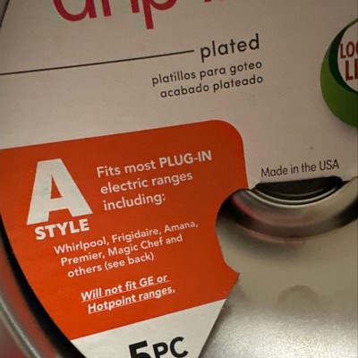 Give your range an instant refresh with a new set of Drip Bowls! Drip bowls, sometimes called drip pans, catch crumbs and spills as you cook and reflect heat toward the cooking elements. Unfortunately, the high heat used when cooking often leads to baked-on messes you can't clean off. Replacing drip bowls is an easy and affordable way to update the appearance of your range! Range Kleen's Style A Replacement Drip Bowls fit most PLUG-IN electric ranges including: Admiral, Amana, Athens, Avanti, Bosch, Brown, Caloric, Chambers, Columbus Stove, Crosley, Dwyer, Electrolux, Enterprise, Estate, Frigidaire, Gaffers & Sattler, Galaxy, Gibson, Goodman (Caloric), Hardwick, Inglis, Jenn Air, Kelvinator, Kenmore (prior to 1995 & since 2004), KitchenAid, Magic Chef, Maytag, Modern Maid, Monarch, Montgomery Ward, Norge, Nutone, O'Keefe & Merritt, Peerless Premier, Perfection, Preway, Roper, Sunray, Tappan, Thermador, Waste King, Welbilt, Whirlpool and White-Westinghouse.