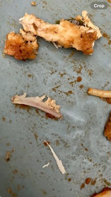 Tastes good and easy to prepare. I bet down on what I initially thought was maybe an overcooked noodle but after removing a piece of chicken from my mouth I discovered a small bone the same diameter as the noodles and about 3/4" long. Fortunately it was in the chicken I was eating and not the portion I gave to my son.