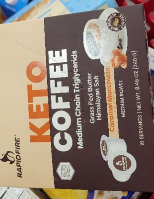 Rapid Fire Ketogenic Coffee Pods offer the finest creamy, delicious Caramel Macchiato flavored functional coffee in convenient fast-brew pods. Rapid Fire crafts organic coffee with coconut oil, MCTs and grass-fed butter ― along with a touch of Himalayan salt – to create a delicious, satisfying and nutritious coffee beverage. These powerful superfoods contain healthy fats that are loaded with energizing compounds, fat-liberating essential fatty acids, and health-protecting antioxidants for numerous nutritional benefits.