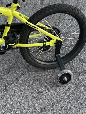 Easy to install, I put these training wheels on my child’s 18” bike. While one wheel rests on the ground, the other is lifted about 3/4” off the ground, which does provide a good wobble, though this has been good for my child who is hesitant to ride a two wheeler. I’m really confident these training wheels will help with his balance. Because it’s cold and snowy out right now, I also brought the bike inside and put the training wheels in some large shoes to elevate the back tire off the ground, and my children have really loved having a “stationary” bike. They ride along to kid’s indoor bike videos, and they love it!