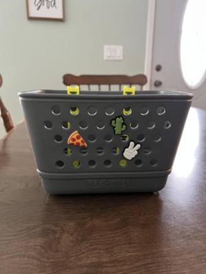 This is a cute bike accessory that is also functional. It can hold up to 8 pounds, great for rocks, sticks, and any other things that my boys might find while riding! We had some Crocs charms and they fit the holes of this basket. The basket comes with 3 charms (cactus, peace sign, pizza).