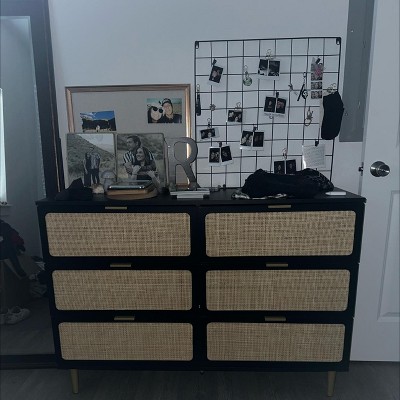 Rattan 6 Drawer Dressers for Bedroom, Large Double Dresser with Deep Drawers, Chest of Drawers for Closet with Wide Top, Long Wooden Dresser