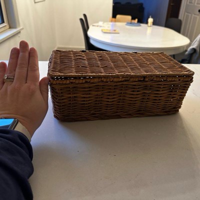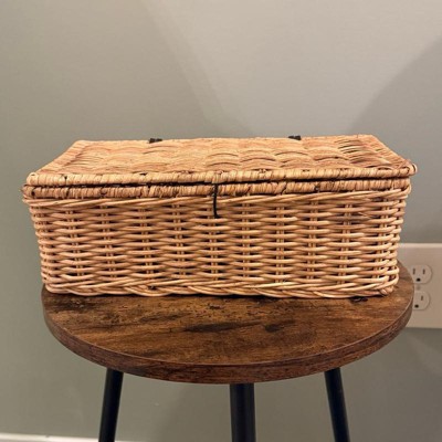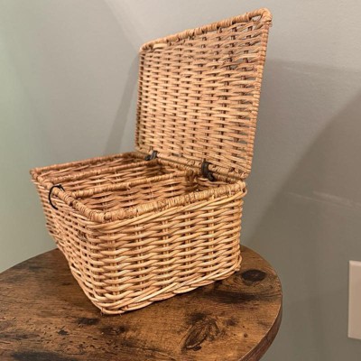[This review was collected as part of a promotion.] I think this rattan bin is super cute, I love how the lid is attached to it and cannot be fully removed. I think this bin is perfect for bathrooms, allowing easy storage and organization. The bin was a bit smaller than I had though it was going to be though. This box adds a lot of natural charm to any space.