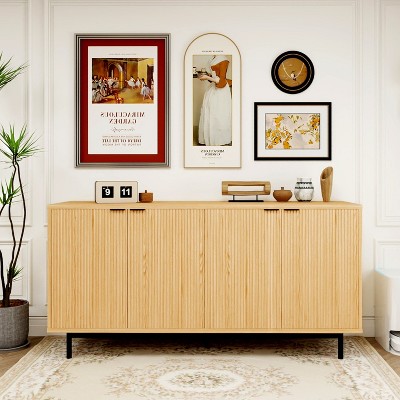 - 【🪵 Rustic Farmhouse Design】Featuring a finely textured surface finish, this sideboard creates a unique tactile effect while allowing easy visibility of contents inside. This storage piece seamlessly blends into diverse decor styles—from traditional farmhouse to contemporary furnishings—serving as a charming accent in living rooms, dining areas, or entryways.