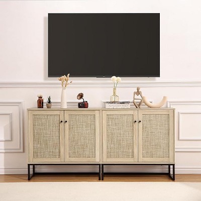 - 【Classic Design】The matte finish and knob handles create a simple yet sophisticated look. Woven rattan doors add a natural touch, creating a sense of airiness and privacy, perfect for a variety of home styles. The tapered metal legs are lightweight and effortless, creating a timeless and stylish design. Whether in a modern, minimalist, Scandinavian, or industrial style, this sideboard will blend seamlessly into any space, creating a visual highlight.