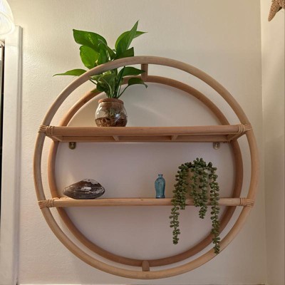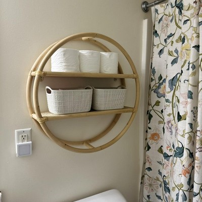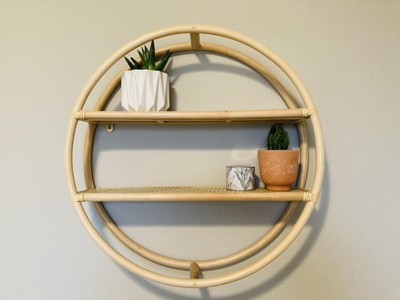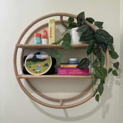 Rattan Kids' Round Shelf Natural - Pillowfort™: Decorative Wall Shelf, Floating Curio Shelves, No Assembly Required