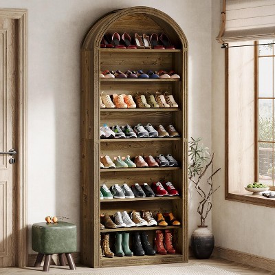 Rattan Shoe Cabinet Storage with 4 Flip Drawers, Freestanding Narrow Shoe Rack Organizer for Entryway Hallway, Brown