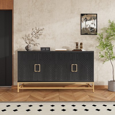Rattan Sideboard Buffet Cabinet,Accent Storage Cabinet with Rattan Doors, Freestanding Sideboard Storage Cabinet for Entryway Living Room Hallway
