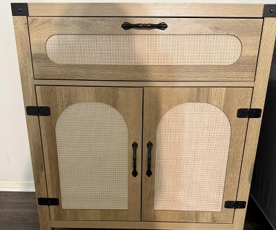 Rattan Sideboard Buffet Cabinets with Storage, Farmhouse Kitchen Accent Storage Cabinet with Drawer, Boho Wooden Coffee Bar Cabinet ,Natural