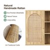 - Elegant & exquisite: Our wall-mounted storage cabinet features an arched handmade rattan door and open shelf, suspended above the sink countertop. The exquisite bathroom wall cabinet fully demonstrates the charm of handmade rattan art lines, wave wood grain, and plant decoration complement each other. The Bohemian style is full of unique cultural charm and natural beauty