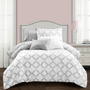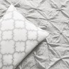 This reversible Ravello Pintuck Caroline Geo Comforter Set is made from soft, cozy cotton alternative fabric. The elastic embroidery gives the front a textured look, and the trellis pattern printed reverse gives it a modern feel. This Ravello Pintuck Caroline Geo Comforter Set is sure to impress, no matter which side you decide to display in your home. Because it is reversible, you get two great looks in one affordable set. The fabric is incredibly soft, and this comforter is heavy enough to keep you warm through even the coldest nights. The Ravello Pintuck Caroline Geo Comforter Set is available in a 5-piece set which includes a soft and luxurious 210 GSM comforter, one pillowcase, one pillow sham, and two unique decorative pillows. It is an oversized Twin, so it will fit on a Twin bed or Twin XL bed. The Ravello Pintuck Caroline Geo 7 Piece Comforter Set includes a soft and luxurious 210 GSM comforter, two matching pillow shams, two pillowcases, and two unique decorative throw pillows. It is available in both King and Full/Queen sizes. Part of the Ravello Pintuck Collection. This product is STANDARD 100 by OEKO-TEX® certified, which means the fabric, dyes, and all components have been tested in an independent laboratory and certified against a list of more than 350 harmful substances.