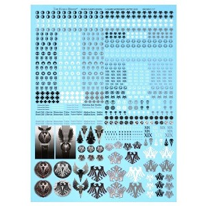 This A4-sized sheet contains 842 high-quality, full-colour waterslide transfers – more than enough for all but the largest Legiones Astartes forces. These transfers allow you to easily customise your miniatures with detailed imagery, specifically designed for the Raven Guard Legion.