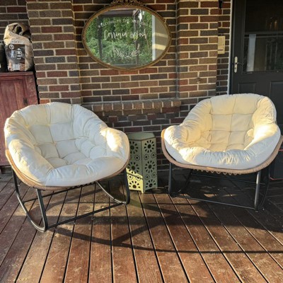 These chairs are so aesthetically pleasing and so comfortable! The perfect chair to sit and read on the patio. I did take a star away because they were a headache to put together, as some of the holes didn’t line up correctly or were covered with the wicker plastic. I also bought 2 chairs and 1 chair came with one small section on raveled but, I hadn’t noticed it until after the chair was together and for sure wasn’t taking it apart to send it back … but it wasn’t anything a little needle and thread couldn’t fix. Overall, I’m pleased with these chair. They’re a great addition to my deck and I can’t wait to lounge and read in them all season long.