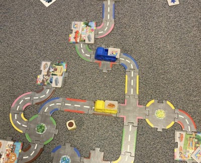 Such a fun and amazing game! You get to build a puzzle board game, which means that the game can be different every time. The pieces are really sturdy cardboard, the dice is nice and chunky wood, and the trucks are very cute sturdy plastic. It’s a two person game, which is great for a small group, for a parent and child, or for a pair of siblings/friends. I work as an SLP and it’s great to use this game for social skills-working together to build a puzzle, deciding and making choices on how thepuzzle Will look, and turn-taking. It also works on colors, understanding and talking about construction zones and building materials. It can be for learning as children explore the board game and work to deliver and talk about it, like competition with whoever gets the most materials delivered winning, or sometimes I just play all the way through with each child getting to deliver six and six as a cooperative game even though nobody wins. Sometimes that just works best as it’s a fun thing to drive the cars from different stations. I love this game and I would recommend it for parents, therapist, and anyone else who enjoys puzzles and gaming with young kids!