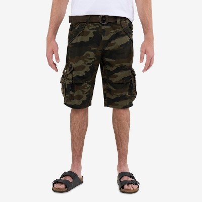 RAW X Men's Belted 12.5" Inseam Cargo Shorts,Plaid Shorts,Camo Shorts
