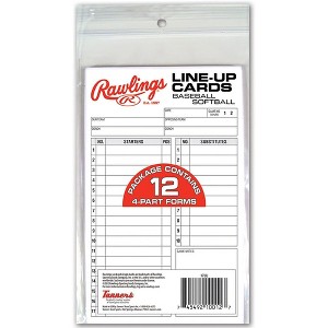 The Rawlings System-17 Line-Up Cards are the perfect companion to the System-17 Scorebook (not included). One pack contains twelve 4-part carbonless forms with room for 17 players and 17 substitutes. The cards come in a resealable bag. Cards measure 4" x 7". Ideal for baseball and softball.
