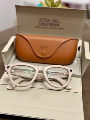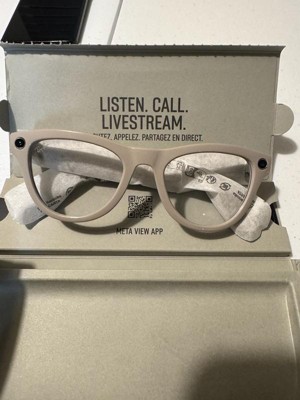 - Accessibility features: Ray-Ban Meta glasses provide helpful utility to those with reduced vision, hearing or mobility by offering the ability to perform tasks that typically require a phone, hands-free. Make an audio or video call, send a text message or take a photo using your voice. Some audio cues are also delivered visually, through light indications on the inside of the frames. For those with reduced vision, prescription lenses are available. You can also use Meta AI* to hear detailed descriptions of the world around you or connect with the Be My Eyes network to get assistance from a sighted volunteer.