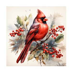 - This Ray Heere Winter Cardinal and Berries canvas art by Art Licensing International is sure to complement any room décor with its Modern & Contemporary style featuring a cardinal bird sitting on a branch of a tree with berries.