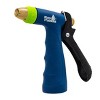 The Ray Padula adjustable metal rear trigger hose nozzle is a great choice for all outdoor cleaning and gentle watering needs. This nozzle offers a spray pattern that can be adjusted anywhere from a gentle mist (great for watering) to a powerful, blasting stream (great for outdoor cleaning), simply by turning the green pattern ring. The durable, all metal construction with a Comfi-Grip design provides dependable performance, season-after-season. Best of all, the EZPush rear trigger design can be locked on allowing for continuous water flow without squeezing the trigger.
