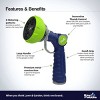 I received product reimbursement in exchange for my honest review. Very strong yet extremely comfortable handle. I have a hose from the same brand, and it fits perfectly with no leaks at all. There are eight different patterns, but I only prefer two of them. The trigger and the thumb control part are extremely easy to use. I can water my lawn and sensitive flowers at the same time by adjusting the pressure.